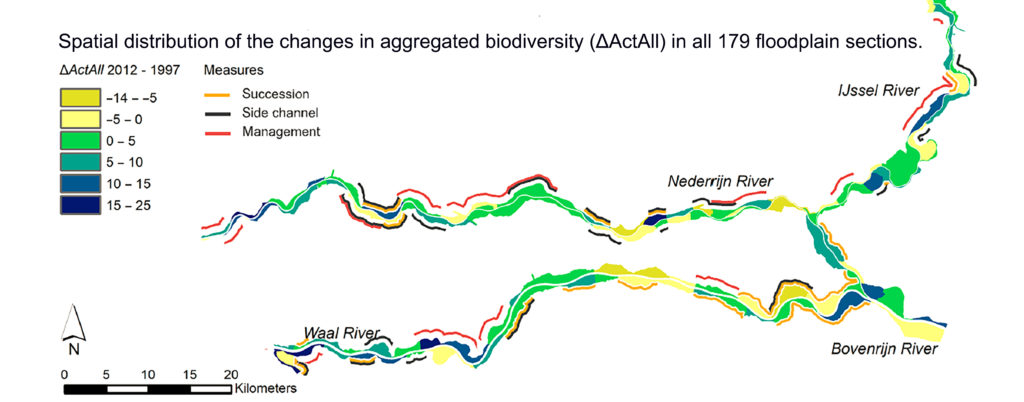 We show the biodiversity recovery from 15 years flood risk adaptation that consider nature requirements building a spatial extension to calculate biodiversity scores.