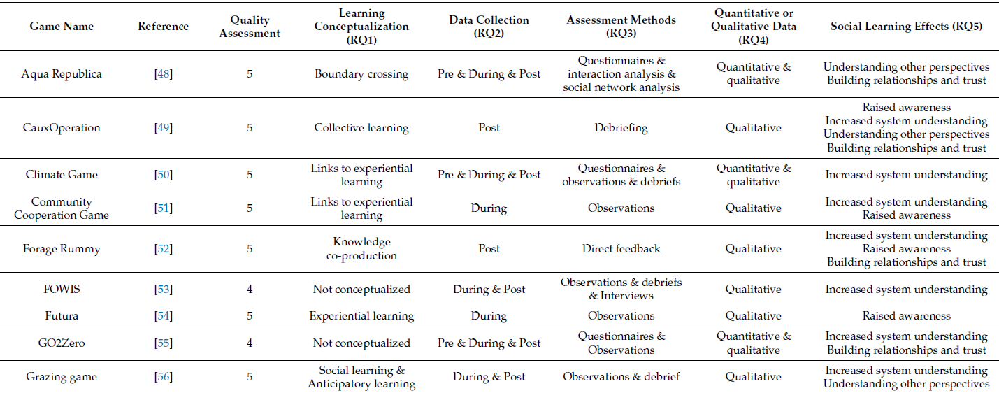 Den Haan, R.-J.; Van der Voort, M.C. On Evaluating Social Learning Outcomes of Serious Games to Collaboratively Address Sustainability Problems: A Literature Review. Sustainability 2018, 10, 4529. https://doi.org/10.3390/su10124529