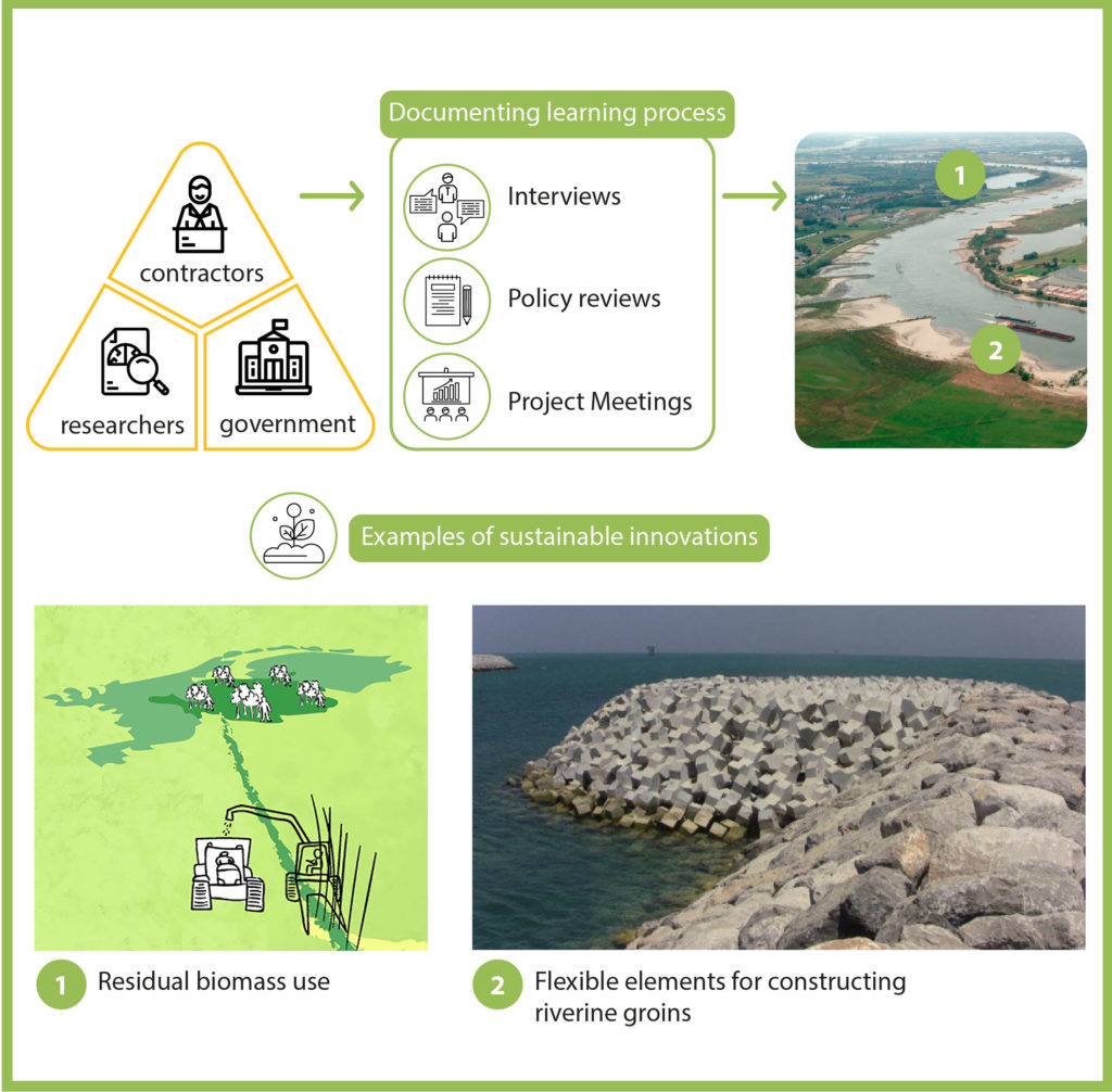 - The Learning Space of the IJssel / Twentekanalen Performance Contract offer possibilities to cooperate on an equal level between contractors, researchers and government. Several innovations such as the flexible cribs for the construction of flexible groins and vegetation management without machines are being tested within the current management and maintenance of the area.